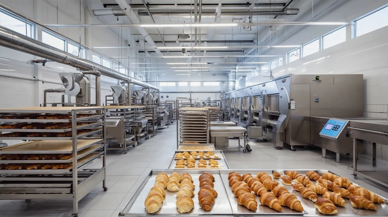- Подбор оборудования. Линии подготовки сырья (просеиватели, дозаторы, плавители жиров). Технологические линии (тестомесильные агрегаты, тестораскаточные машины, формовочные автоматы, пекарские шкафы и тоннельные печи). Оборудование для отделки (глазировочные машины, дражеровочные барабаны, аппараты для нанесения начинок). Системы термостатирования (охладительные конвейеры, климатические камеры). Упаковочные линии (фасовочные автоматы для штучных и весовых изделий, флоу-пак машины). Вспомогательное оборудование (конвейерные системы, моечные установки, металлодетекторы). Логистические модули (склады сырья с климат-контролем, системы хранения готовой продукции, погрузочная техника).